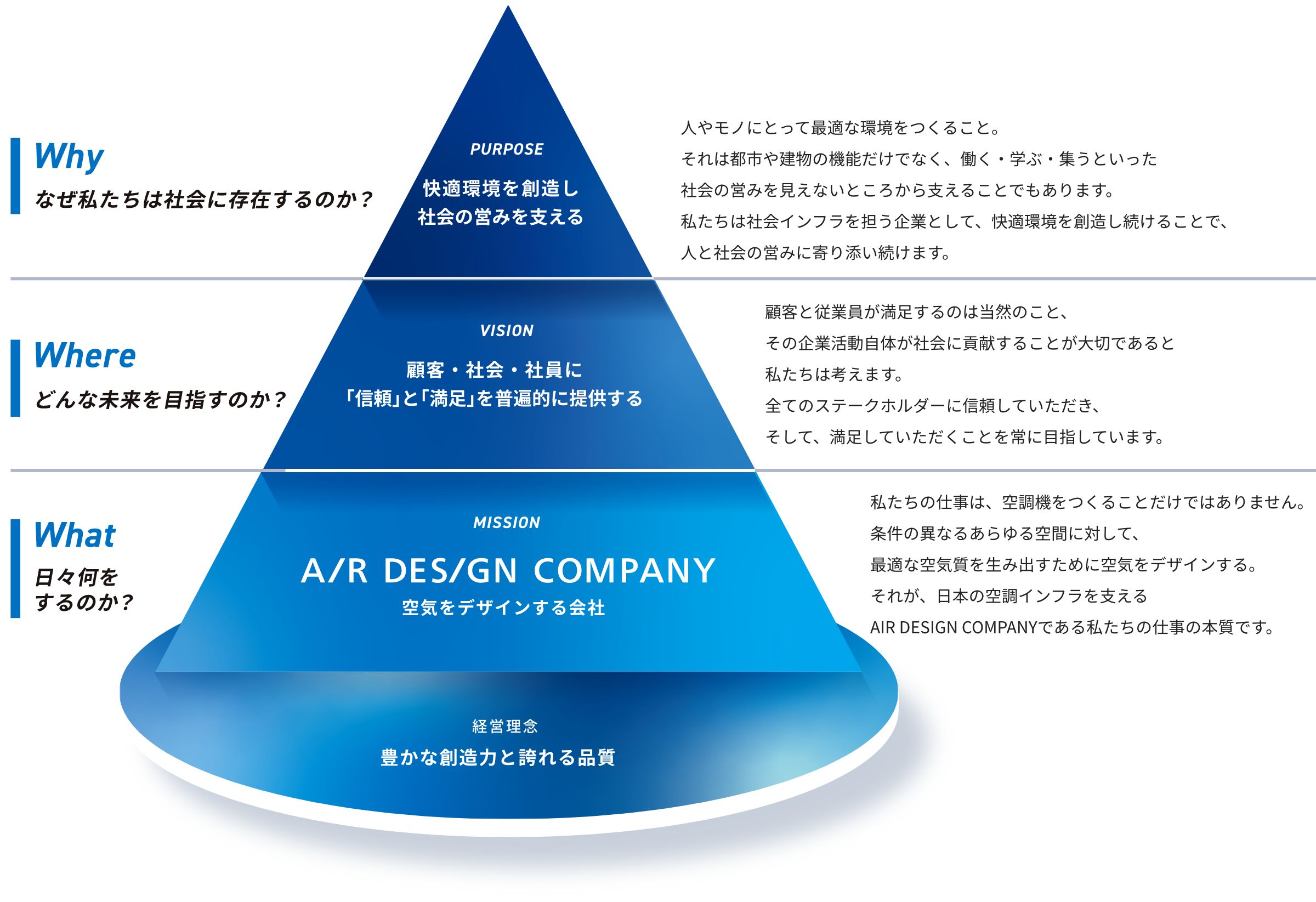 当社グループは、『豊かな創造力と誇れる品質』を経営理念とし、その実現に向け、顧客・社会・社員に対し「信頼と満足」を普遍的に提供することを最大限努力します。そのために、社員一人ひとりが次の行動指針や行動規範を順守します。